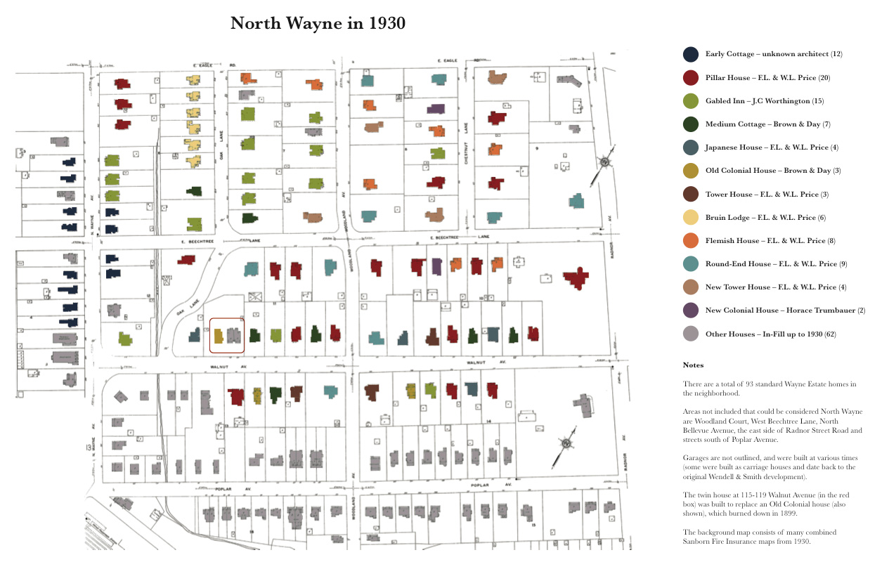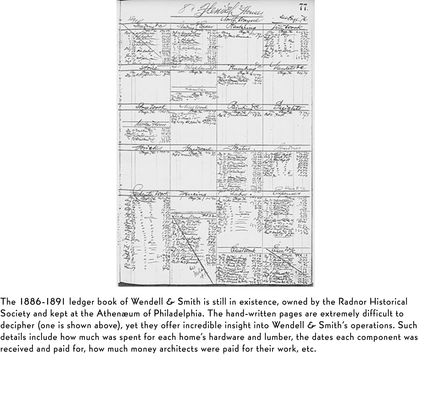 Wendell & Smith were pioneers of Philadelphia area suburban development in the late 19th and early 20th centuries. They employed young architects such as William L. Price and Horace Trumbauer (later to become famed designers themselves) to design suburban homes for developments such as Wayne, St. Davids, Overbrook, and Pelham. Separately, Herman Wendell and Walter Bassett Smith developed Wynnewood Manor, parts of Ardmore, Essex Fells, New Jersey, and Bradley Hills, Maryland. The majority of homes built by the firm and its successors are still in residential use today. PD&HS's long-term study of Wendell & Smith's work and influence has included the discovery of items never before documented, an extended research internship at the Athenæum of Philadelphia, and a great deal of documentation of resources as they currently exist.
