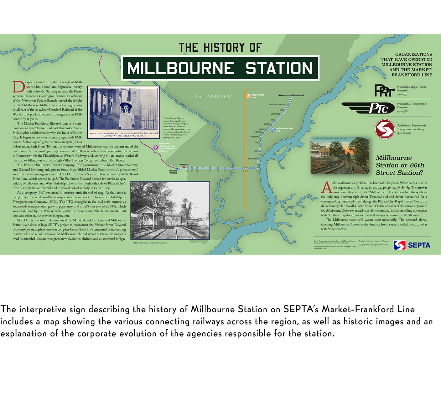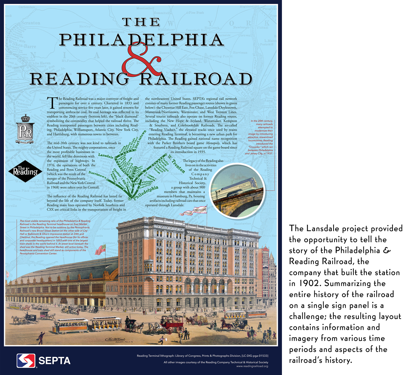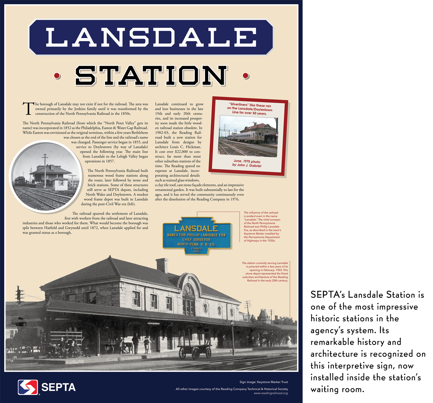 PD&HS was retained by SEPTA, the Philadelphia area's primary transportation agency to create two sets of interpretive signage for important stations within its extensive system.